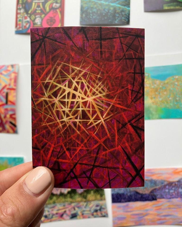 This year’s sticker pack is a unique opportunity to sample many of my paintings at once before committing to an original or a larger print. They make a lovely decoration for your water bottle, thermos, laptop, office wall, car dashboard, bicycle, motorcycle, or surfboard. You could place them on a home altar for good luck, make ornaments, magnets, or put them in tiny frames to hang on a wall. Make your holiday correspondences more special with a little surprise, or keep them for yourself. They make great bookmarks if you're scared of commitment. What else can you do with them? Show me please!